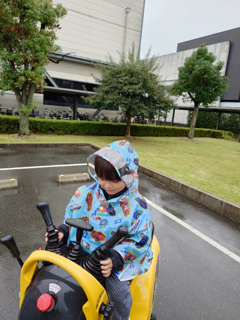 あいにくの雨模様でしたが、ショベルカーに乗りご満悦!