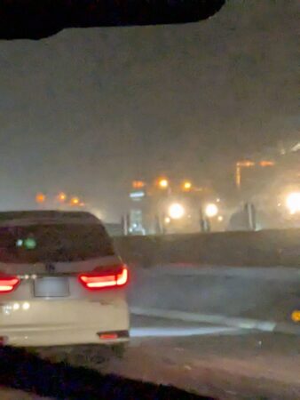 新名神高速道路の土山SA付近から時速5kmほどでしか進まなくなった。