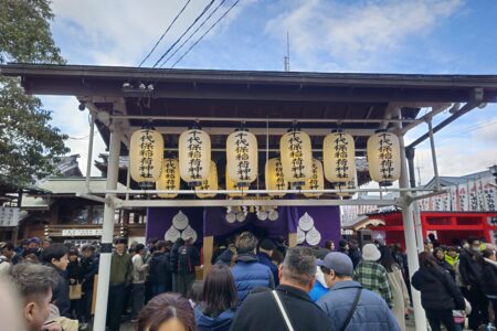 千代保稲荷神社は、両サイドに露店が山ほどある通りの中央部にある。
