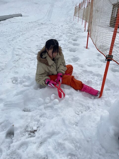 次女は怖いから無理…と言って、ずっと雪玉を作っていました。