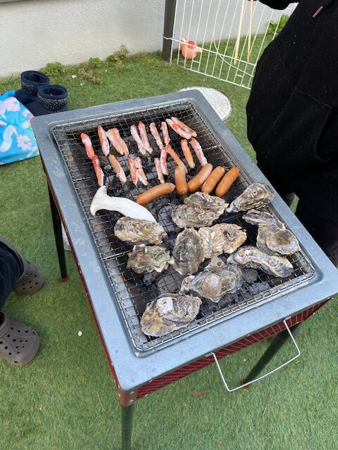 全部で約8キロの牡蠣を購入し、嫁さんの妹の家の庭で炭火で焼いて食べました!