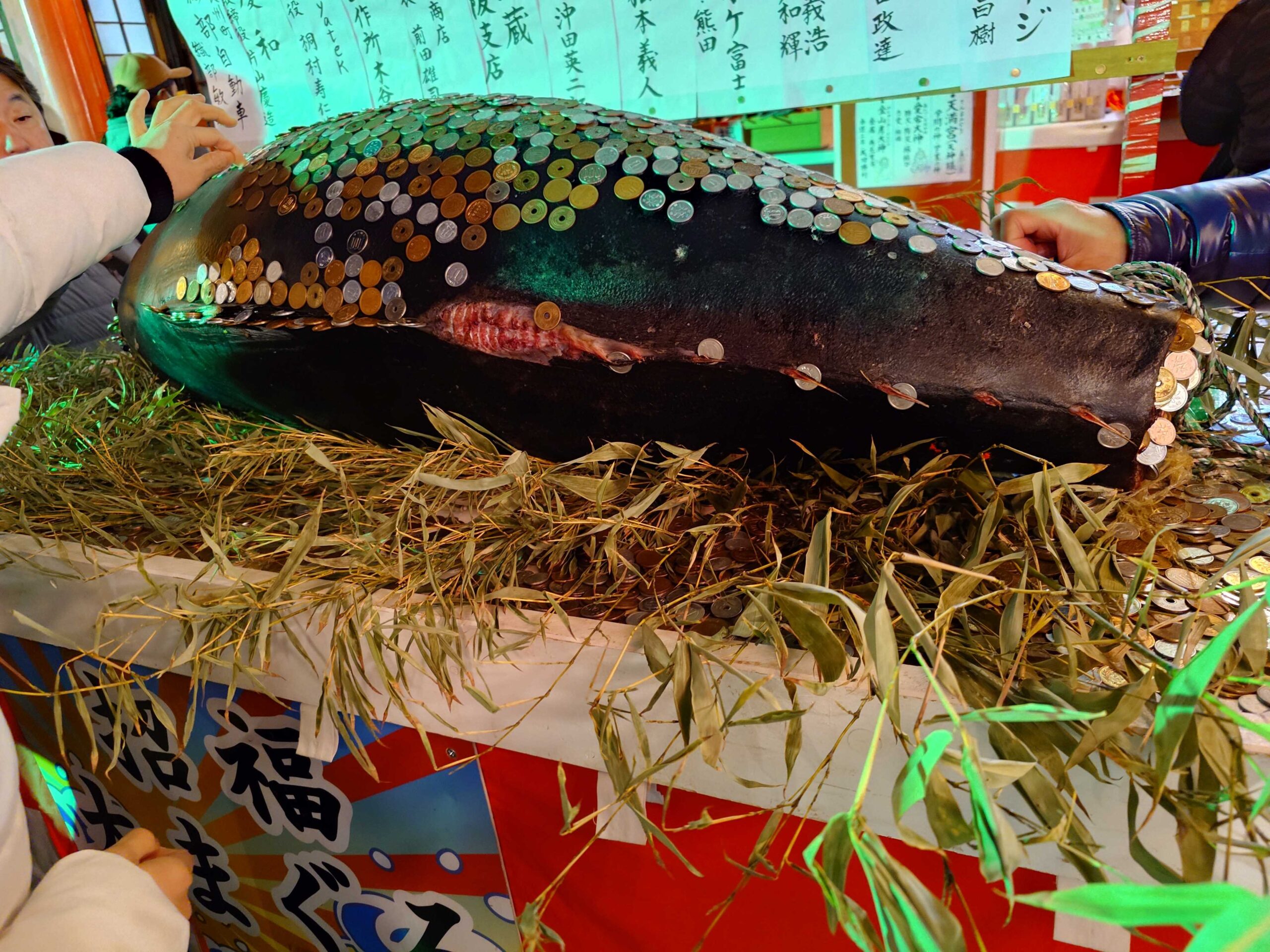 この 尼崎えびす神社では、えべっさんの時は毎年マグロが奉納されており