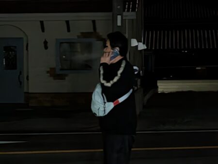 ▲真っ暗の中、テンパっていることを隠しながら10回ぐらい電話を掛けるY岸さん
