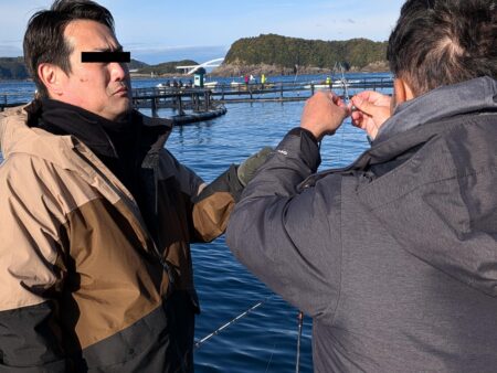 Y岸 『あっすんません。それはそうと今日はブリやけど重りは〇gぐらい?棚(深さ)は30mぐらいかな?』