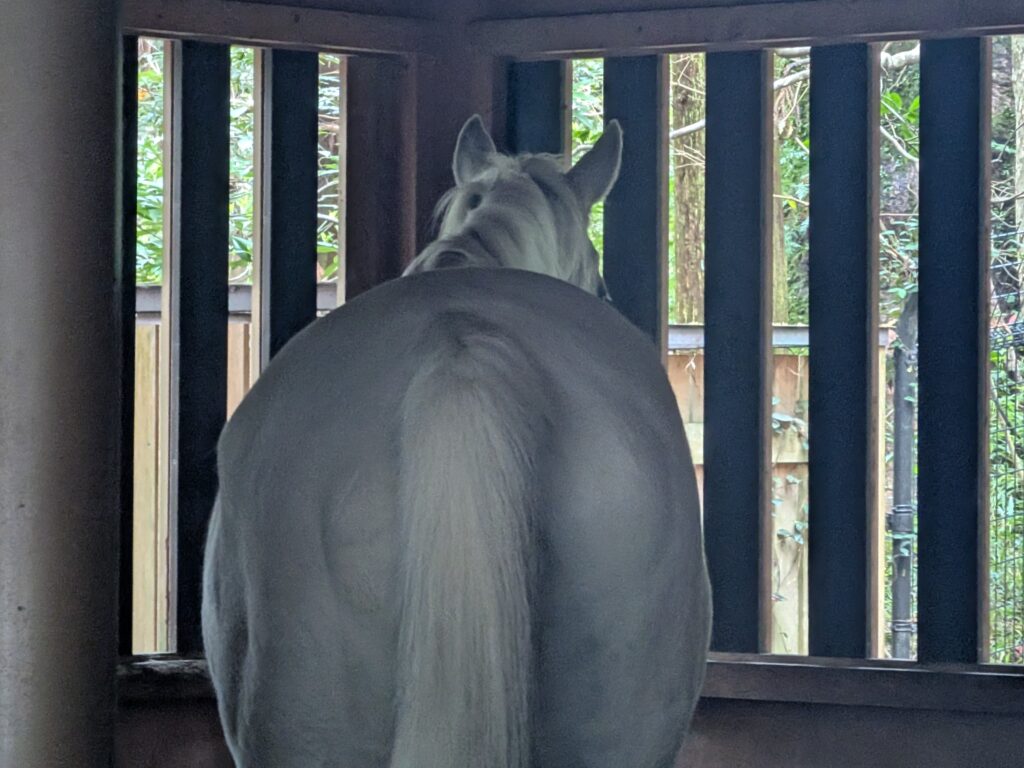 ▲お尻しか見せてくれない白馬もいました